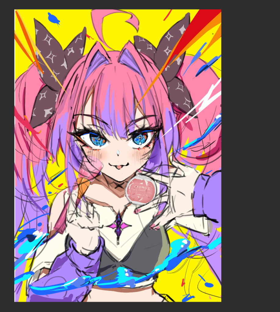 私の中でヴィヴィちゃんはメイクのイメージが一番濃いのでチークを入れている最中みたいなイメージで案を出していきます