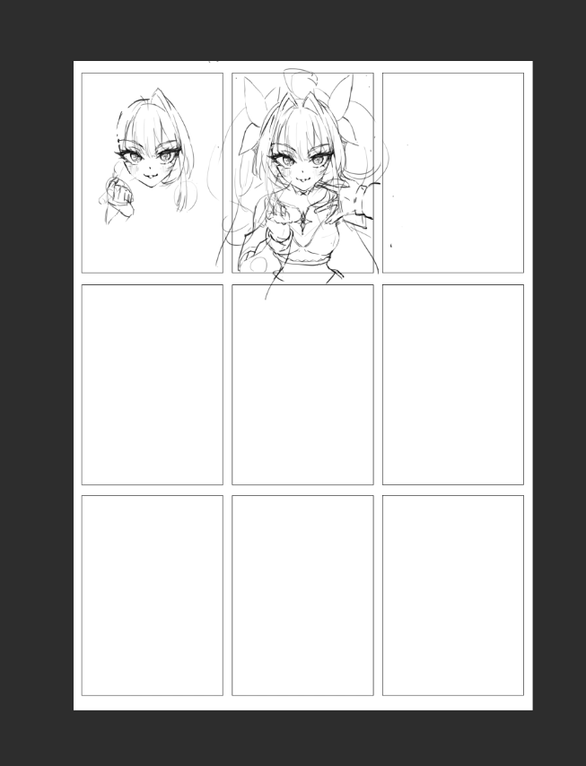 私の場合は下のようにキャンバスに3×3の枠を作ってイメージを何個か描いていきます